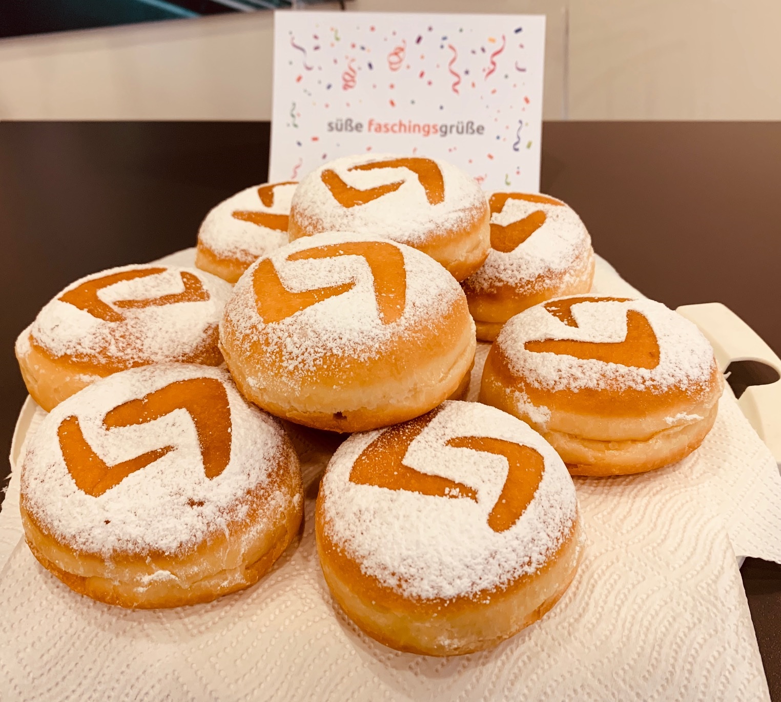 Und genau darum gab es in all unseren Filialen am Faschingsdienstag leckere, süße Faschingsgrüße für Mitarbeiter, Kunden, Lieferanten und Geschäftspartner, die uns einen närrischen Besuch abgestattet oder auch einfach einen ganz normalen Arbeitstag verbracht haben.
